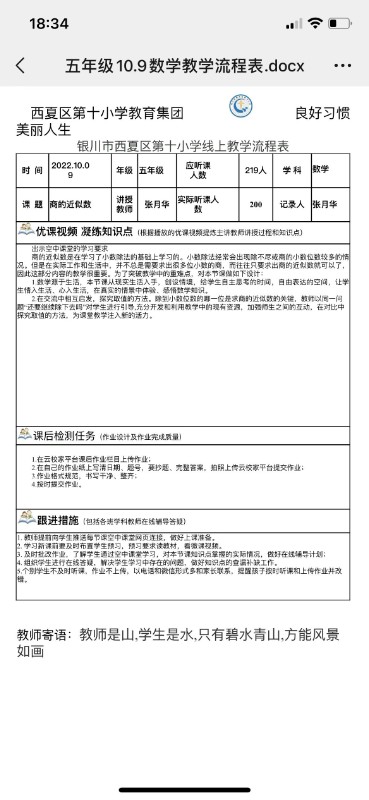 学校教导处统一制作课表,全体教师提前准备课程、精心整理资源、高效进入状态。依托宁夏教育资源公共服务平台宁夏数字学校“同步课程”及国家中小学智慧教育平台,以“宁教云”为平台采用线上优课推送和教师直播相结合的方式授课。线上教学实现了一次信息技术的普及,为现代化教学手段和传统教育的融合提供了一个助推器,为今后的教学实现跨越式发展提供坚实基础。
