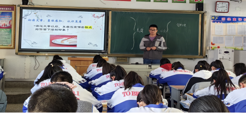 拓展延伸环节学生们提到“门神”、“老人戴金”等带有中国特色的东西,段老师顺势又补充了具有浓厚中国特色的“印章、筷子、中国结、龙图腾、瓷器”等物品,并让学生“以 触动了我的心”为题,选取一种具有中国特色的物品,运用“以小见大”的手法,写作文片段,既拓展了课堂内容,也锻炼了学生的写作能力。