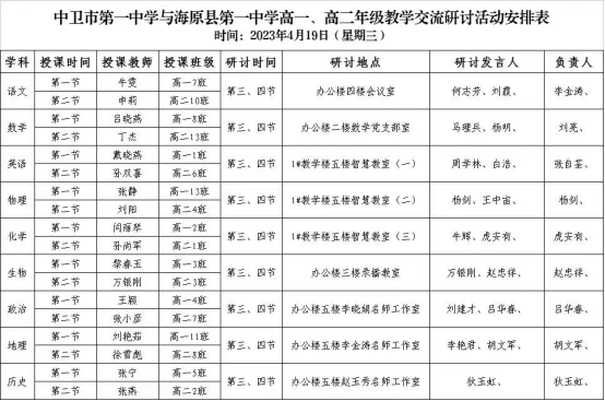 “教而无研则浅,研而无教则空”。为加快推进县中托管帮扶全覆盖工程,促进校际深度交流与合作,2023年4月19日上午,中卫市第一中学联合海原县第一中学共同组织开展了“高一、高二年级教学交流研讨活动”,中卫一中牛雯老师和申莉老师认真备课、积极做课,得到了全体老师的一致好评!