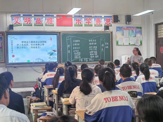 申莉老师在高二(10)班为我们带来群文阅读“数典多少英雄梦,苏子情感蕴其中——《赤壁赋》(第三段)、《念奴娇·赤壁怀古》《江城子·密州出猎》”文本联读,课堂环节连贯,形成“明确典故、齐读课文、写作背景、文本分析、体会情感、自由发言、总结归纳”的完整的课堂呈现。