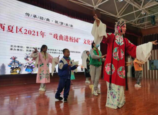 戏曲是中国传统的艺术文化形式,也是世界文化宝库中一颗璀璨的明珠。为了弘扬社会主义核心价值观,让青少年学生更多地了解中华优秀戏曲文化,传承中华文明,由银川市西夏区文化旅游体育广电局、银川市西夏区教育局,西夏区文化馆联合主办的2021年度“戏曲进校园”活动走进了华西希望小学,为师生们奉上丰盛的传统文化大餐,帮助未成年人树正确的审美观念,陶冶道德情操、培育深厚民族情感,感受戏曲魅力,增强未成年人爱国情感。