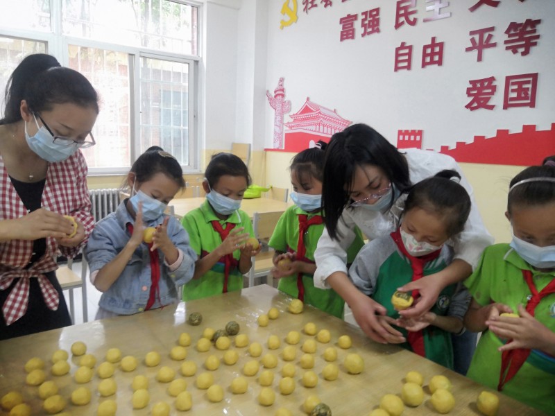 华西希望小学师生共做月饼